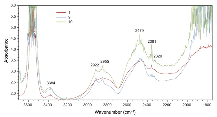 FTIR (Fourier Transform Infra-Red) spectrometers measure the absorption of infrared radiation for different wavelengths (usually expressed as wavenumber, the number of waves per cm). Infra-red wavelengths range from about 700nm to 1mm. Absorption patterns may be used to identify gem materials, distinguish between natural and synthetic stones and detect coatings and filling materials. Diamond types can be recognised, which assists in the separation of synthetic and treated stones.