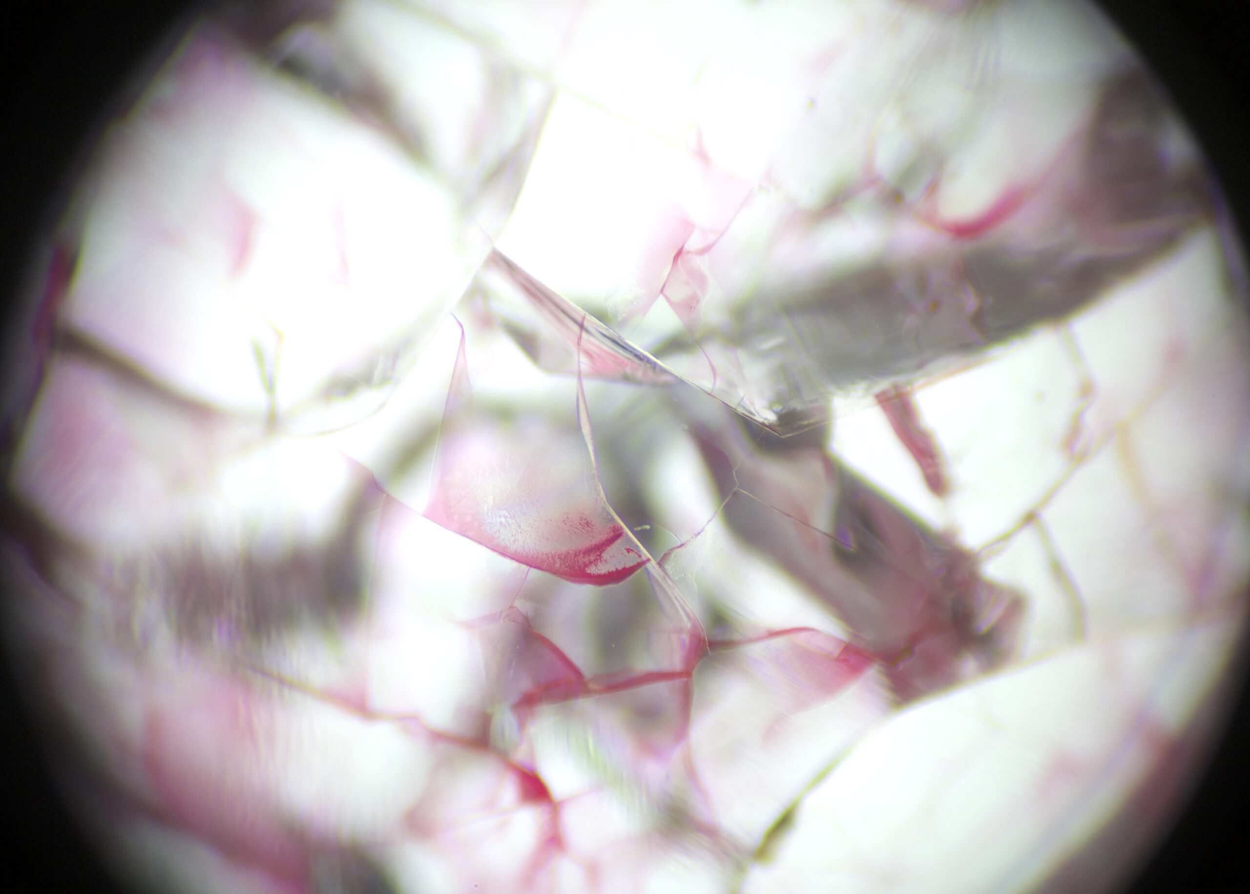 Concentrations of colour in a dyed ruby, photographed by Pat Daly.